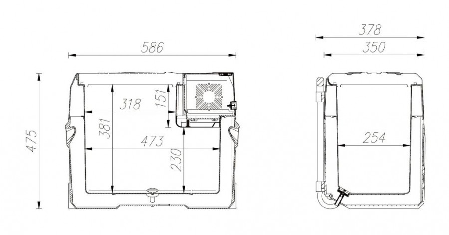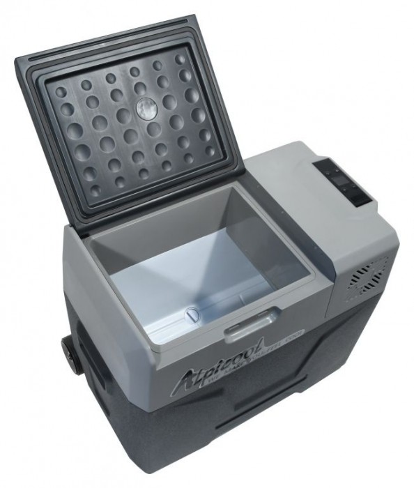 Chladicí box je vybaven výkonným kompresorem s chladicím médiem a lze jej použít jak jako chladničku s teplotou 0 – 10°C, tak i jako mrazicí box s teplotou až -20°C. Chladicí box nabízí režim ECO pro úsporu elektrické energie a Hi mode pro rychlé ochlazení obsahu až k -20°C (při okolní teplotě 25°C). Dále je vybaven inteligentním systémem ochrany před vybitím připojeného akumulátoru a je osazen displejem s tlačítky pro pohodlné ovládání. Díky postranním madlům, vysouvací rukojeti a kolečky je zajištěna vynikající mobilita. Vnější plášť je proveden z bytelných, odolných plastů v šedém provedení. Spolu s PU izolací zajišťují dlouhodobé zachování stabilní teploty uvnitř boxu a zaručují velmi nízkou spotřebu energie. Okraj ovládacího panelu je doplněn o krytou USB zásuvku pro napájení zařízení s USB konektorem.
