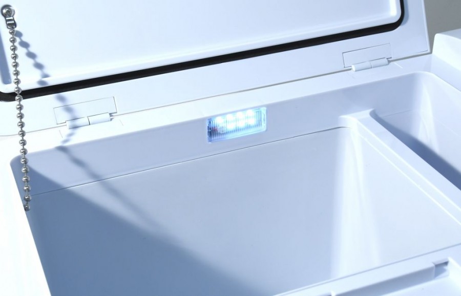 Chladicí box je vybaven výkonným kompresorem s chladicím médiem a lze jej použít jak jako chladničku s teplotou 0 – 10° C, tak i jako mrazicí box s teplotou až -20° C. Chladicí box nabízí režim ECO pro úsporu elektrické energie a Hi mode pro rychlé ochlazení obsahu až k -20°C (při okolní teplotě 25°C). Dále je vybaven inteligentním systémem ochrany před vybitím připojeného akumulátoru a je osazen displejem s tlačítky pro pohodlné ovládání. Díky postranním madlům je zajištěno komfortní přenášení. Vnější plášť je proveden z kvalitně lakovaného hliníku stříbrné barvy, který spolu s perfektní PU izolací zajišťuje dlouhodobé zachování stabilní teploty uvnitř boxu a zaručuje velmi nízkou spotřebu energie. Okraj ovládacího panelu je doplněn o krytou USB zásuvku pro napájení zařízení s USB konektorem.