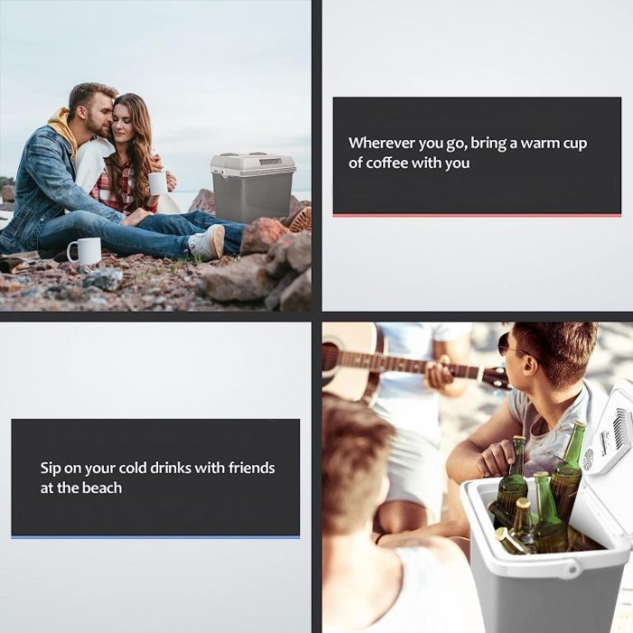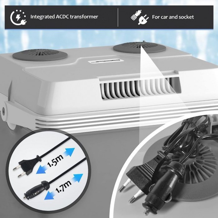 Snadné použití: Tento chladič má mnoho uživatelsky přívětivých funkcí, jako je vestavěná rukojeť, dva různé napájecí porty (normální a vhodný do auta) a obousměrný systém otevírání víka.
