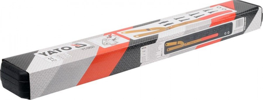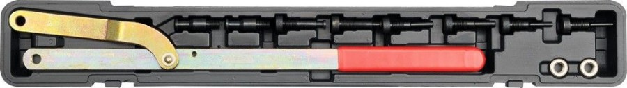 Klíč určený pro napínání řemenů motorových vozidel. Souprava obsahuje celkem 11 kusů příslušenství. Dvě matice, samotný klíč a čepy různých průměrů. Sada je přehledně uložena v plastovém kufru.