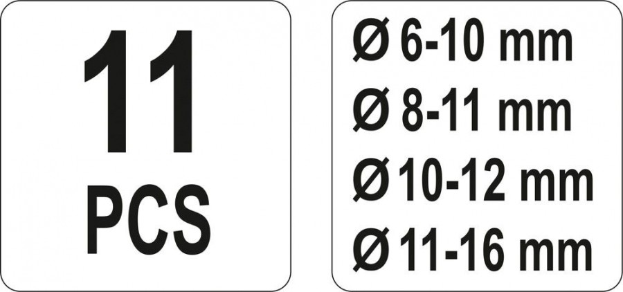 - průměr čepů v balení: 6 - 10 mm; 8 - 11 mm; 10 - 12 mm; 11 - 16 mm