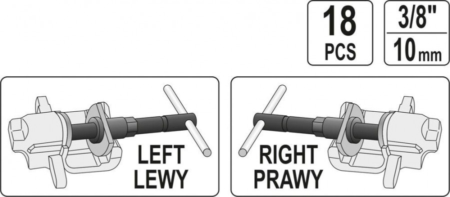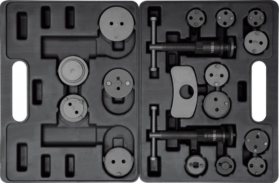 Profesionální sada pro de/montáž kotoučových brzd. Zařízení se skládá z levotočivé i pravotočivé šroubovice a sady desek širokou škálu vozů. Určení pro automobily Citroen, Ford, Mazda, Saab, Alfa Romeo, Honda, General Motors, Nissan, VW, Audi, Rover, Subaru, Paugot, Toyota a další.