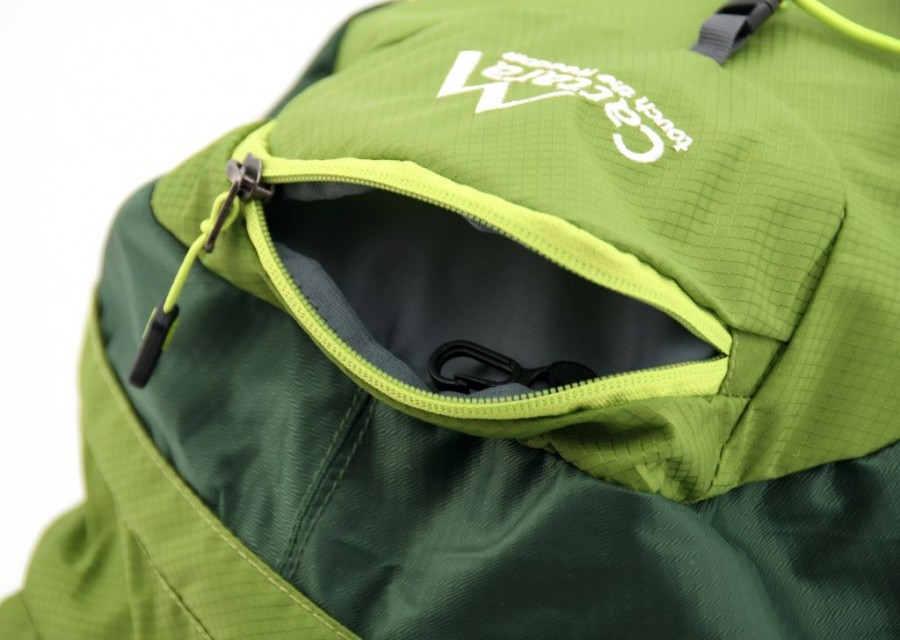Je vyroben z polyesteru a má kapacitu 32l. Na bocích a čelní straně se nachází mnoho kapes pro uschování věcí,které budete k výletu potřebovat. Má také popruhy,které se lehce nastaví a zaručí tak dobré nošení pocelou dobu chůze.