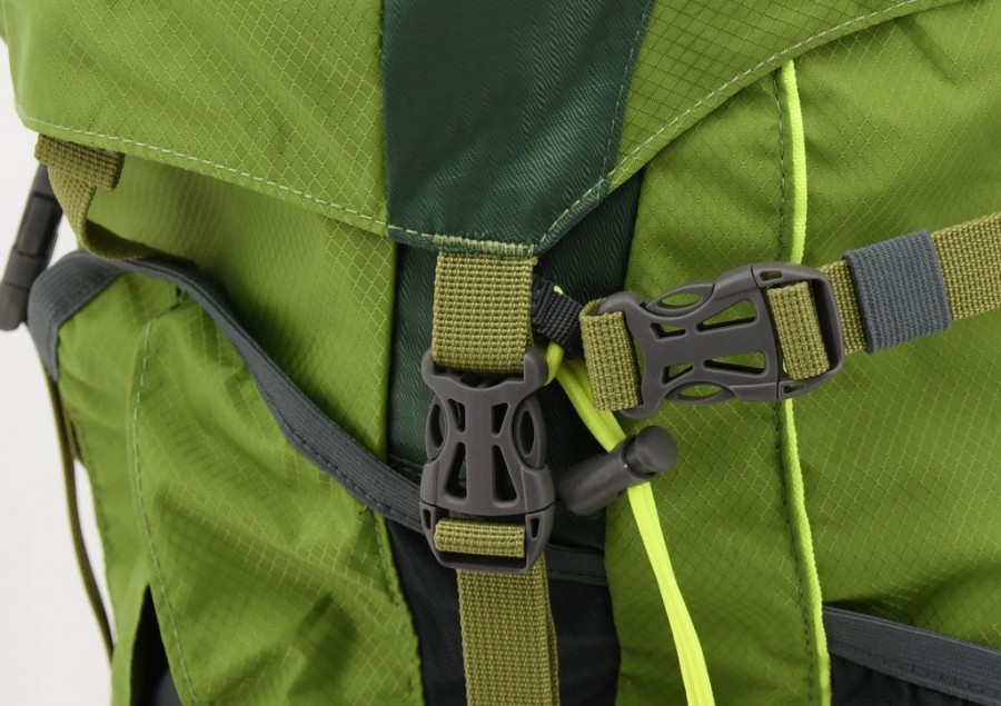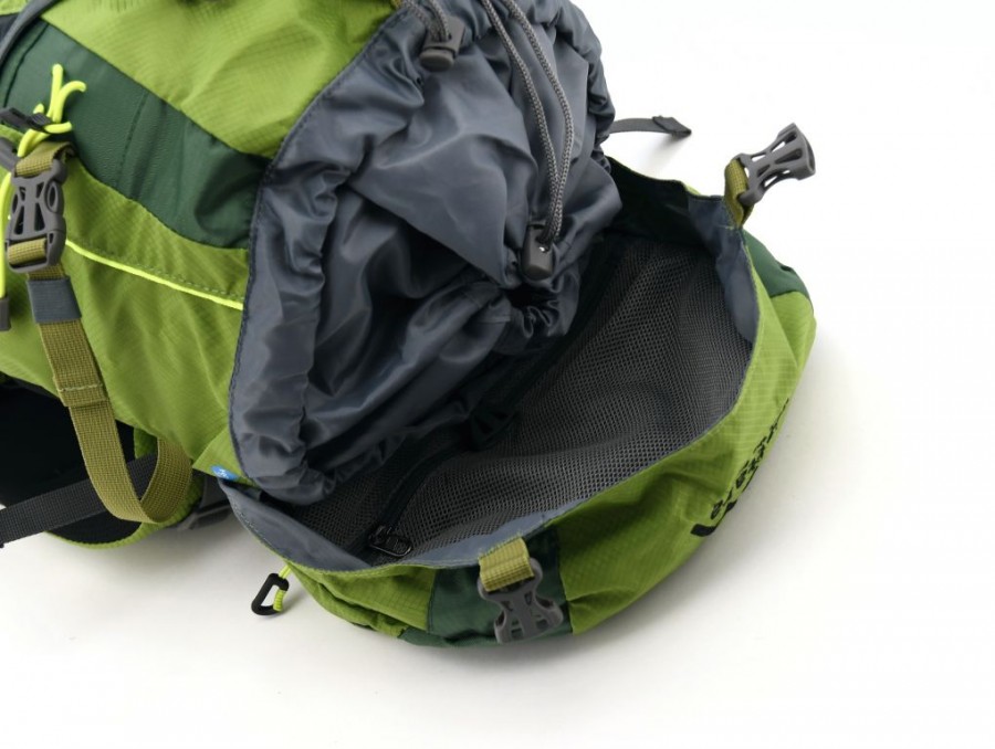 Je vyroben z polyesteru a má kapacitu 45l. Na bocích a čelní straně se nachází mnoho kapes pro uschování věcí,které budete k výletu potřebovat. Má také popruhy,které se lehce nastaví a zaručí tak dobré nošení pocelou dobu chůze.