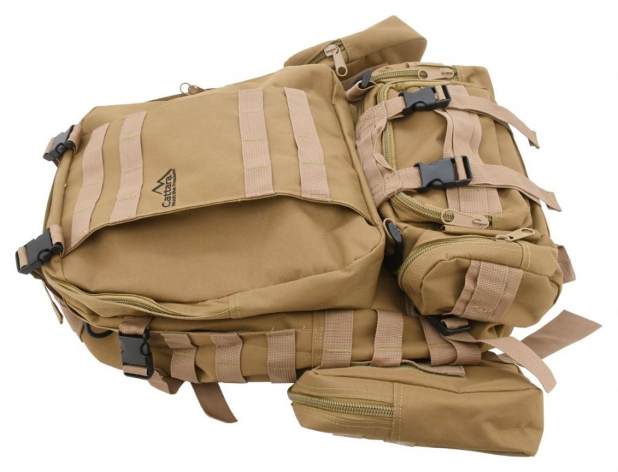 Přední strana batohu obsahuje Molle systém - což je systém, který slouží pro uchycení dalších doplňků k výpravě. Každá kapsa je zajištěna bytelným dvoucestným zipem. Vnitřní kapsy a sítěná kapsa jsou doplněné o poutka pro bezpečné nošení drobných předmětů. Jedna z vnitřních kapes je opatřena klasickým zipem a zadní větraná kapsa je opatřena suchým zipem. Obsahuje nepromokavou tkaninu.