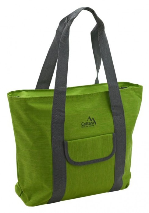 Vyrobena je z odolného polyesteru s nízkou hmotností 210 g, v zeleném provedení vhodném do přírody. Pro pohodlné přenášení je taška doplněna širokým popruhem šedé barvy.