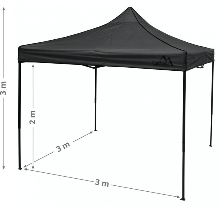 Skládací párty stan s rozměry 3 x 3 m s podchozí výškou 2 m.