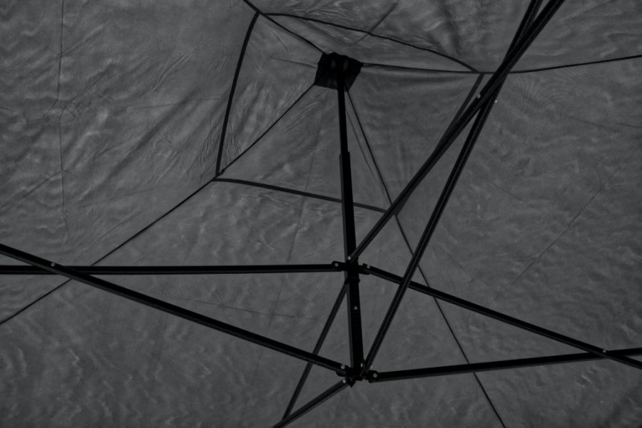 Nepromokavý materiál střechy, polyester 600D, zajistí použití párty stanu při slunném dni i v deštivém počasí. Párty stan je ideální řešení pro zahrady bez zastřešených teras, ale i do kempu.