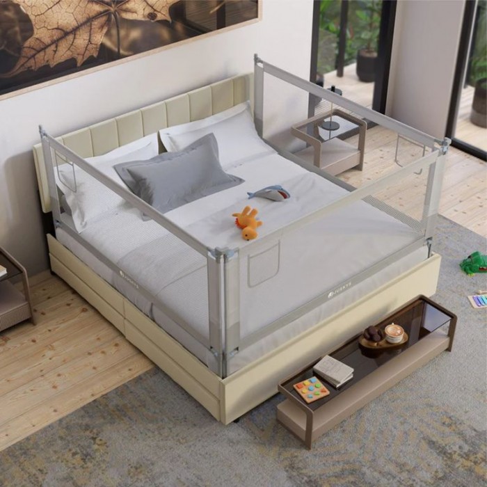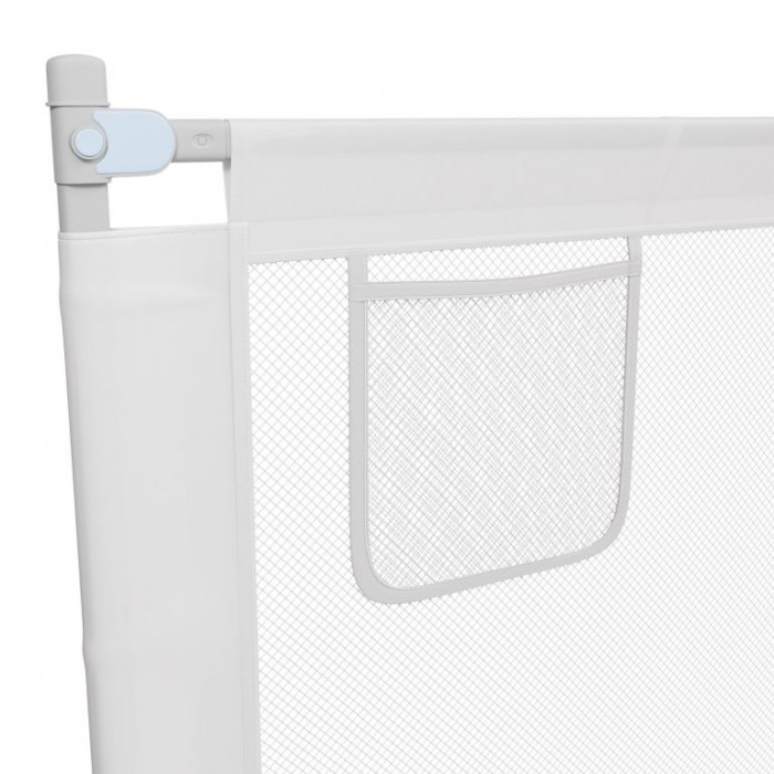 Zábrana je výškově nastavitelná, takže ji snadno přizpůsobíte různé výšce matrací (5–25 cm). Stabilitu zajišťuje pevný železný rám, kvalitní Oxford tkanina a odolné plastové spojky. Konstrukce je skládací, což usnadňuje manipulaci i cestování. Zábranu lze také kombinovat s dalšími panely pro vytvoření delší ochrany.
