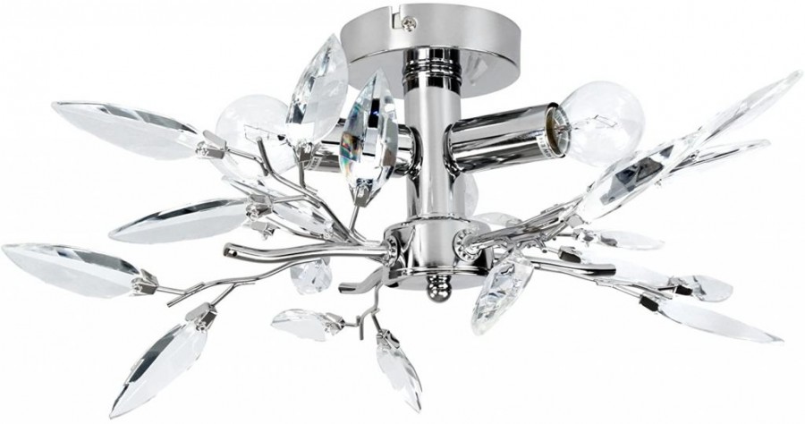 Funkční a dekorativní stylová lampa se třemi objímkami je ideální do obývacího pokoje nebo jídelny. Lze našroubovat tři 40 wattové žárovky. Po zapnutí světla vytváří hravé uspořádání listů a větví zajímavou hru světla a stínu. Kombinace broušených polyakrylových listů a stříbrných větví vyzařuje lehkost a lze ji kombinovat a vytvořit klasický i moderní životní styl.
