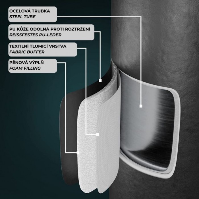 - materiál: ocelový prut, PU kůže (polyuretan), nylon, ABS plast