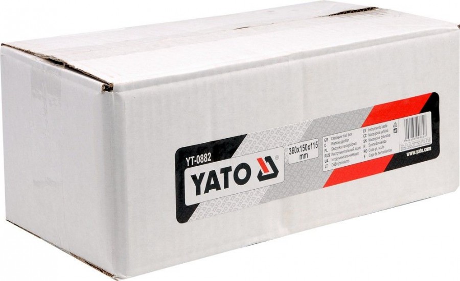 Box rozměrů 360 x 150 x 110 mm s váhou 1,4 kg je vyroben z ocelového plechu.