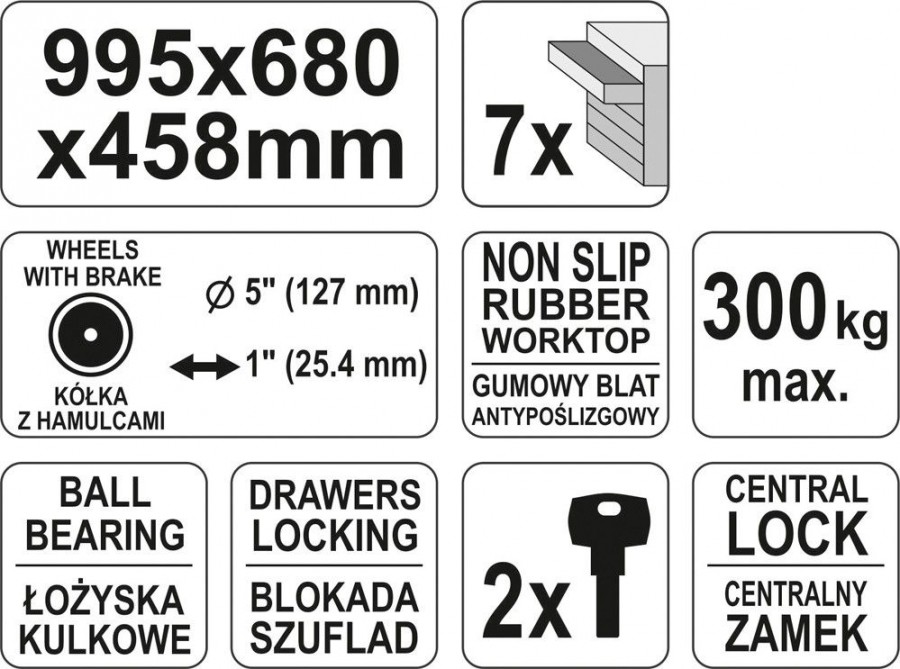 - 1 x pojízdná dílenská skříňka - 7 zásuvek