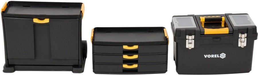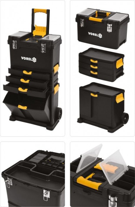 Třídílný mobilní vozík pro uložení nářadí a příslušenství.