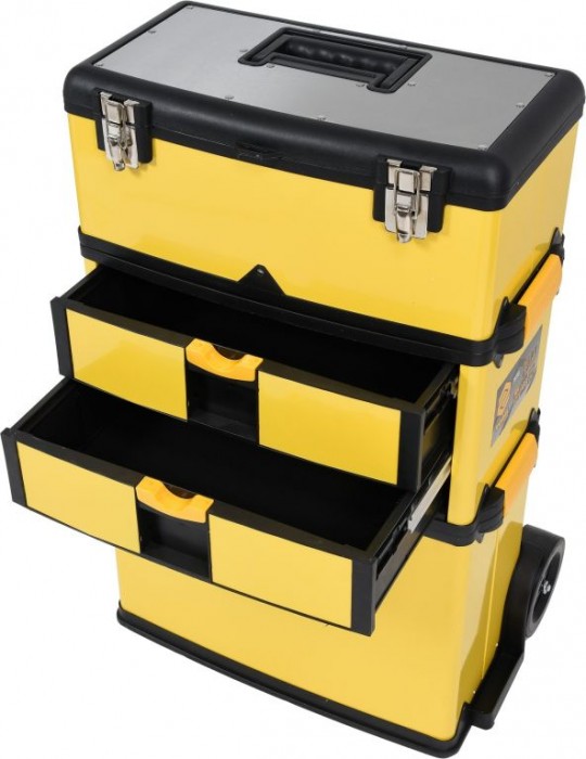 Třídílný mobilní vozík pro uložení drobného nářadí a příslušenství.