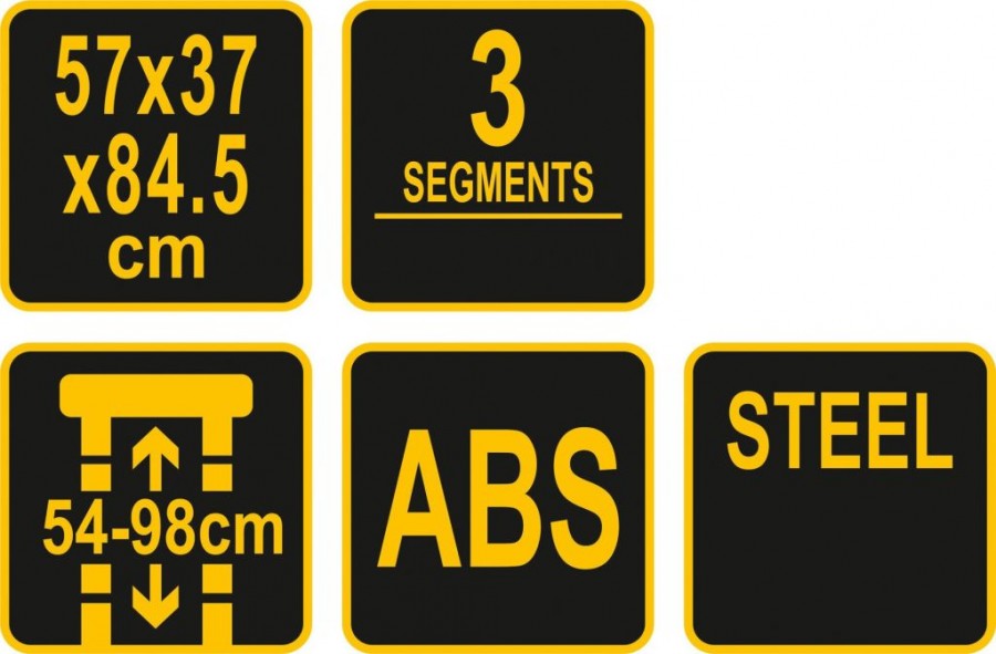 Vyroben z ABS plastu o rozměrech 57 x 37x 84,5 cm a odolného proti mechanickému poškození a poškrábání.