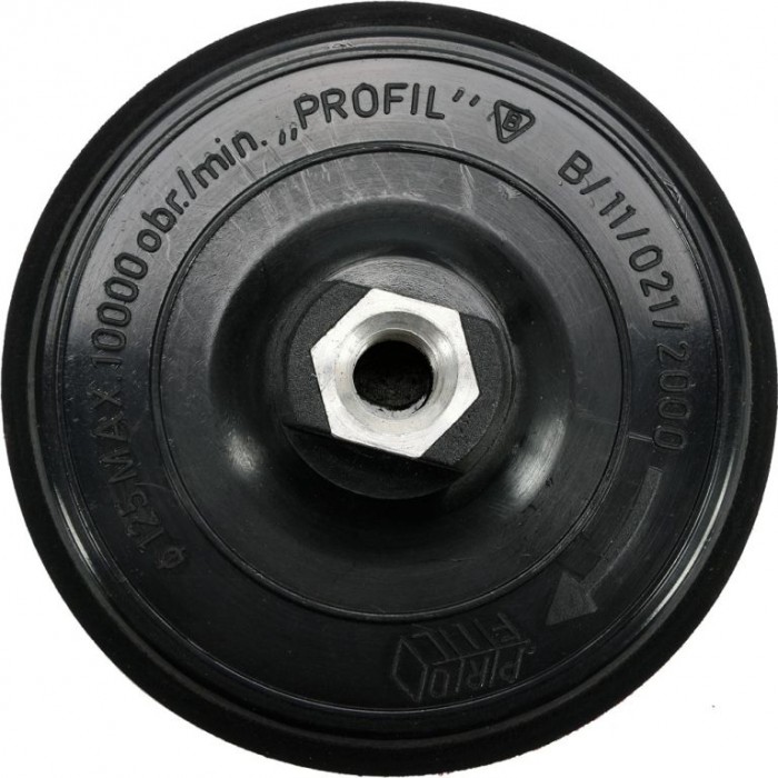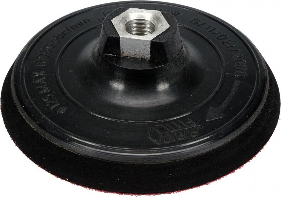 V pracovní části suchý zip pro rychlé a stabilní upevnění brusných kotoučů o průměru 125 mm.