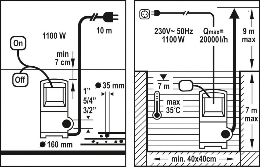 Čerpadlo se hodí pro domácnosti, zahrady, i v zemědělství. Může být použito pro rychlé odčerpávání a přepouštění vody v nádržích a nebo vypouštění zatopené místnosti. Tělo čerpadla je vyrobeno z nerezavějícího oceli, chránícího zařízení před vnějšími vlivy. Dále je vybaveno plovákovým spínačem, který zabraňuje provozu čerpadla "na sucho". Pro připojení do sítě, je čerpadlo opatřeno kabelem délky 10 m.