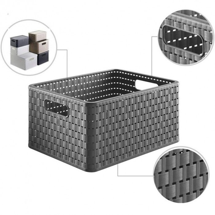 Moderní design a kvalitní provedení plastového úložného boxu A4 ve stylu ratanového výpletu nabízí široké využití v celé domácnosti. Praktické úchytky pro snadné přenášení.