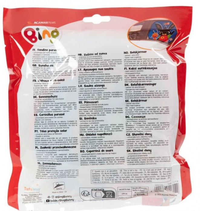 Sada obsahuje 2 ks clonek s dětským motivem Bing. Jsou určeny na zadní, nebo boční skla automobilu.