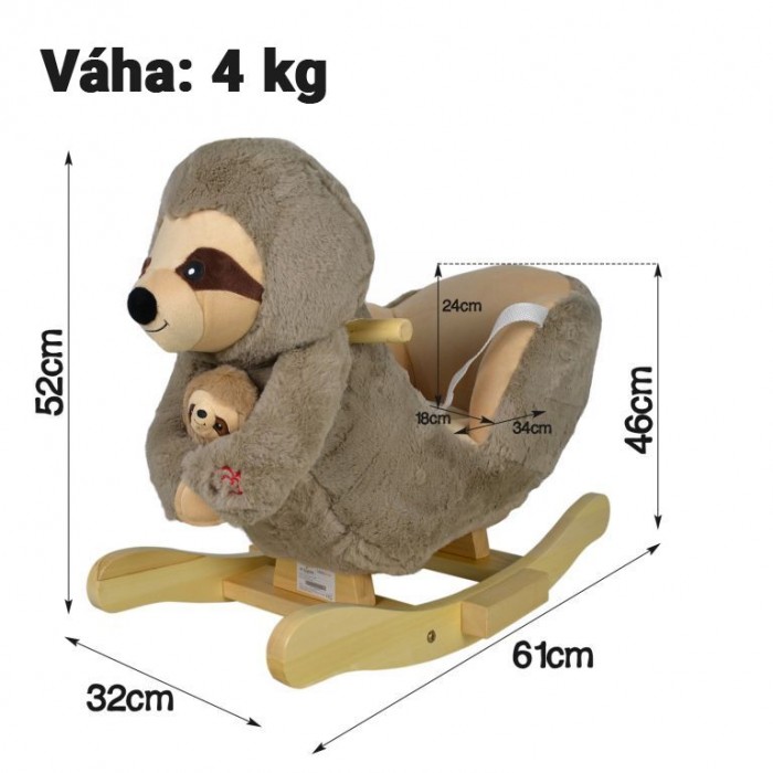 Infantastic Plyšový hrací houpací lenochod, 61 x 32 x 52 cm