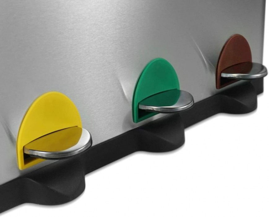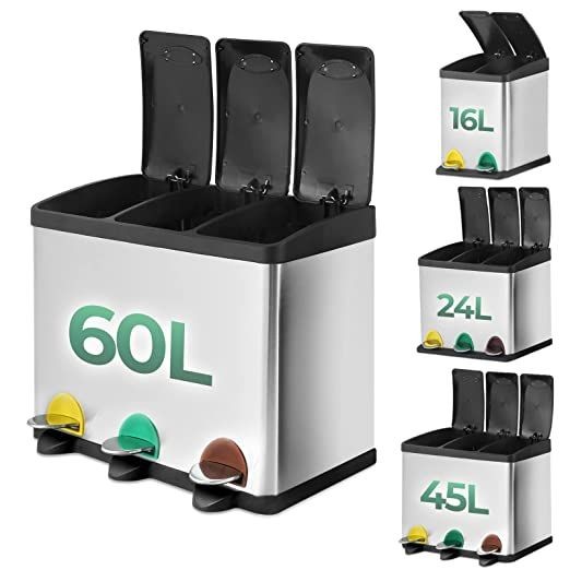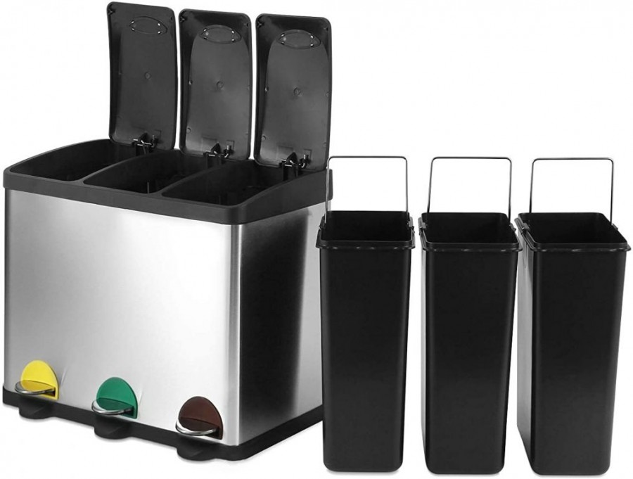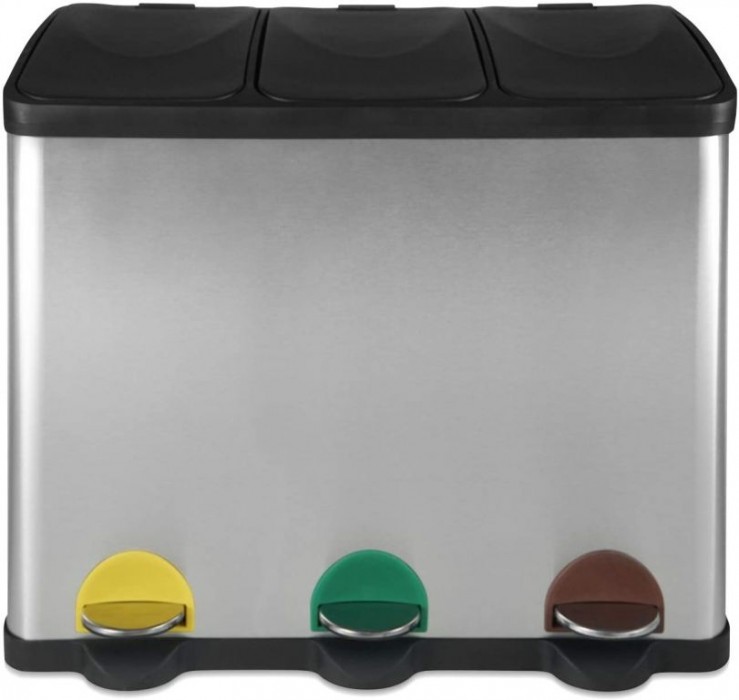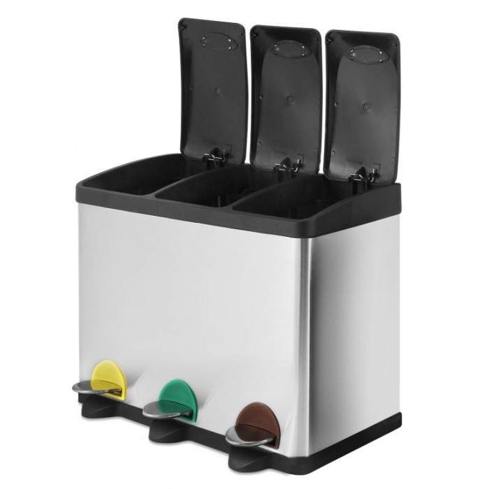 Tento pedálový odpadkový koš má oddělené vnitřní kbelíky, které jsou ideální pro třídění různých druhů odpadu nebo recyklaci. Funkčnost spolu s módním designem činí tento odpadkový koš ideálním pro použití v kuchyni, ale lze jej považovat také za praktický doplněk do koupelny, ložnice nebo kancelářských prostorů. Těsně uzavřené víko našeho třídiče odpadu se otevírá pomocí barevných pedálů a umožňuje snadný přístup k vyjmutí a vyprázdnění odpadků z vnitřních kbelíků. Odpadkový koš má stabilní protiskluzovou základnu, která chrání povrch podlahy, a také praktické madlo na zadní straně, které je vhodné pro snadný transport celého předmětu.