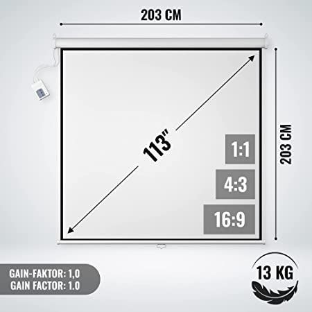 JAGO Projekční plátno s dálkovým ovládáním, 203 x 203 cm