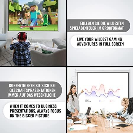 Pohodlné projekční plátno s dálkovým ovládáním pro promítání ostrého obrazu s vysokou kvalitou a rozlišením. Toto plátno nabízí maximální pohodlí, protože je výškově nastavitelné. Můžete upravit požadovaný formát. Plátno má černé okraje pro lepší kontrast. Roletová zástěna je vhodná pro montáž na stěnu i na strop. Spodní napínací tyč motorizovaného plátna napíná vinylovou tkaninu, aby se zabránilo jakémukoli druhu záhybů. Pomocí dodaného dálkového ovladače můžete projekční plátno na dálku srolovat, upravit a rozvinout.