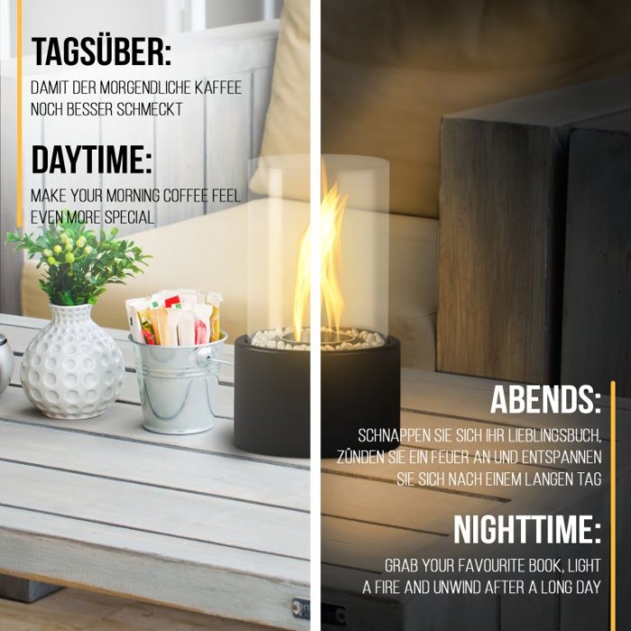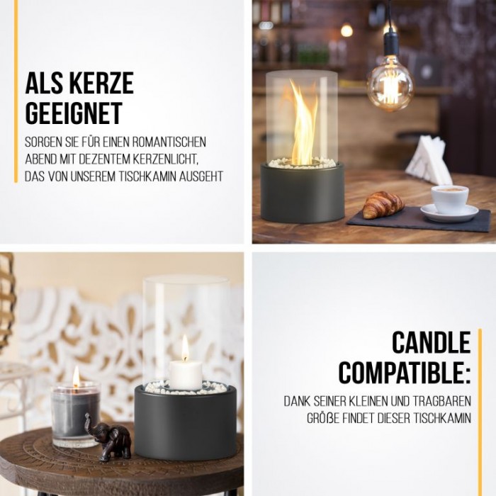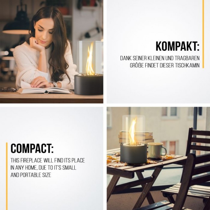 Stolní krb propůjčí vaší domácnosti zvláštní kouzlo. Malý a snadno přenosný stolní dekorativní krb se perfektně hodí na jakýkoli stůl, ať už uvnitř nebo venku. Jeho sestavení a použití je velmi snadné a nevyžaduje žádnou montáž. Stačí naplnit nádrž a užít si útulné večery. Krb nevyžaduje k plné funkčnosti žádnou instalaci ani konstrukci, jako je např. komín, ventilace, elektrické nebo plynové připojení. Navíc oproti klasickým krbům tento stolní krb je nenáročný na údržbu – neprodukuje žádné saze ani nečistoty.