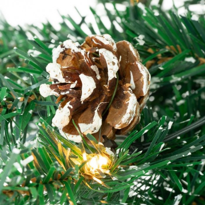 Vánoční stromek je osvětlený světelným řetězem s 50 LED diodami v teplém bílém světle. Kulatý podstavec ozdobného stromku je v malém jutovém sáčku. Díky provozu na baterie nejste závislí na elektrické zásuvce a stromek můžete umístit kdekoli v místnosti. Praktický časovač / časový spínač umožňuje ovládat dobu svícení světelného řetězu. Stačí stisknout tlačítko Start v okamžiku, kdy chcete, aby se světla rozsvítila. Nyní LED diody svítí 6 hodin a poté jsou 18 hodin vypnuté. Volně volitelná funkce časovače nebo nepřetržitého svícení.