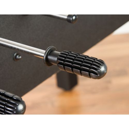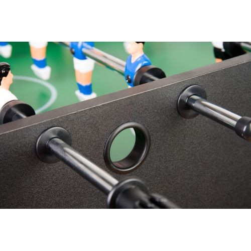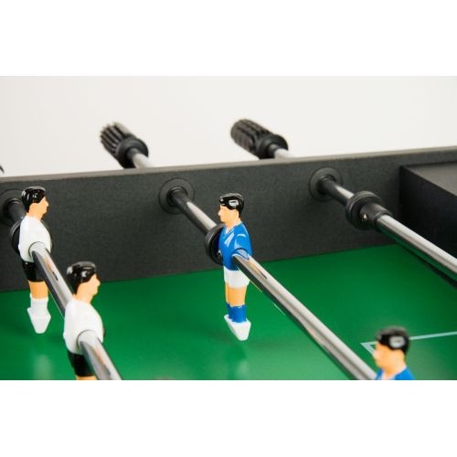Stolní fotbálek je určen především pro začátečníky, ale i ti pokročilejší si užijí plno zábavy. Protiskluzové, ergonomicky navržené rukojeti a kluzná ložiska Vám zajístí snadnou hru. Díky hladce vyvýšeným rohům hracího pole nezůstane nikdy míček ležet v rohu. Pro vysokou stabilitu má fotbálek dvě stabilizační tyče pod hracím polem a příčné vzpěry na nohách, které jsou výškově nastavitelné a slouží k vyrovnání stolu do vodorovné polohy. Jako další funce má Glasgow protiskluzová pogumovaná madla, která zaručují plnou kontrolu a kluzná ložiska s nízkou potřebou údržby. K fotbálku jsou dodávány 2 speciální míčky, které mají zdrsněný povrch pro optimální přilnavost a dobré vlastnosti vedení míčku.