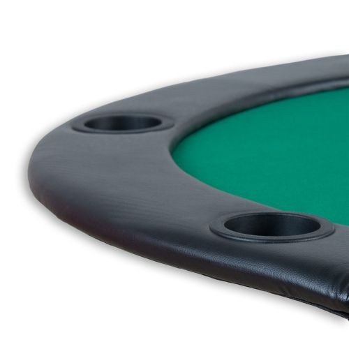 Poker podložka skládací se skládá z 10 mm silné MDF desky, z 1 mm dřevotřísky a odolného zeleného plátna. Opěrka má také 10 držáků na nápoje. Dodává se bez pokerových žetonů a karet.