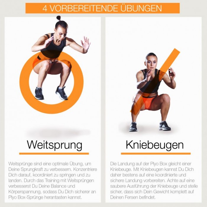 Funkční trénink má na rtech každý. Důležitým nástrojem k tomu je Plyobox od Gorilla Sports, se kterým rychle zvýšíte svou skákací sílu a rychlost. Plyometrický trénink navíc zlepšuje vaši koordinaci, rychlost reakce a flexibilitu. Na rozdíl od svých pevných příbuzných je tento plyo box nastavitelný: horní prvek lze uzamknout v pěti různých výškách a zajistit robustními kovovými kolíky. A protiskluzový pogumovaný povrch a gumové nožičky zaručují jistou nohu v žáru okamžiku. K zahřátí nebo k seznámení se s plyo boxem jsou vhodné například step-upy: Skládají se z jednoduchého pohybu do schodů. Různá skákací cvičení, jako je double leg box jump, jsou mnohem dynamičtější. Zde skočíte na bednu oběma nohama zároveň a zase slezete dolů. Další možností jsou výpady, kdy buď položíte přední nohu na bednu, nebo na ni položíte zadní nohu.