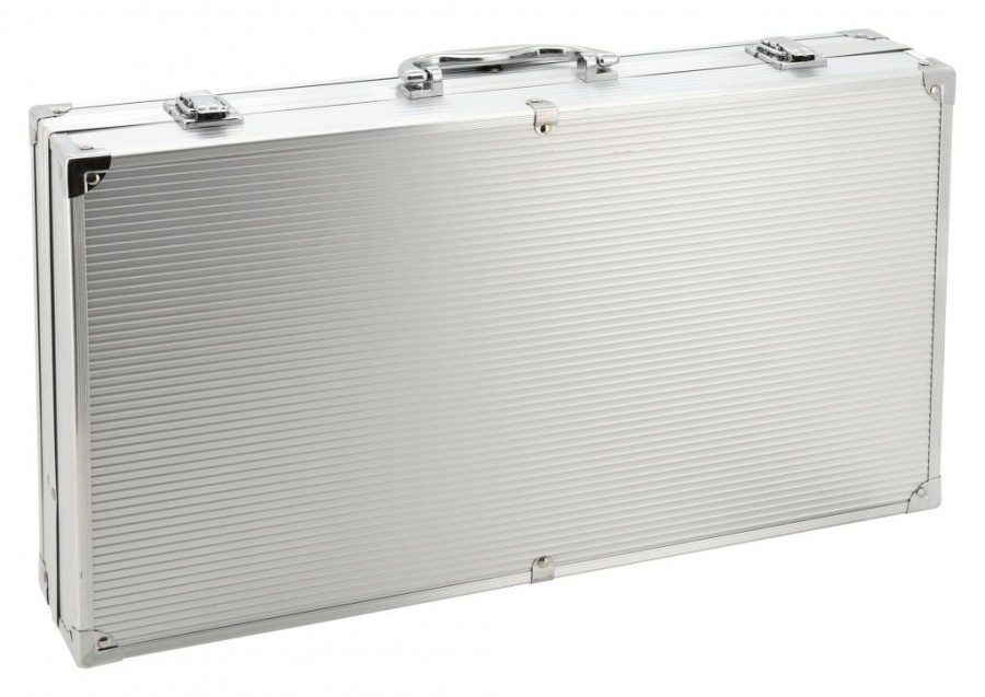 Profesionální sada grilovacího nářadí, se vším, co pro grilování potřebujete. Sada obsahuje veškeré nástroje pro přípravu a konzumaci nejrůznějších pokrmů, ale i následnou údržbu grilu. Veškeré nástroje jsou navíc kvalitně zpracovány z nerezové oceli. Sada je úhledně umístěna v transportním kufru a hodí se pro ty nejnáročnější vyznavače dobrého jídla. Výčet jednotlivých nástrojů ocení kdokoliv. Sada je primárně určena k využití doma na zahradě, ovšem užitečná je i na cestách.