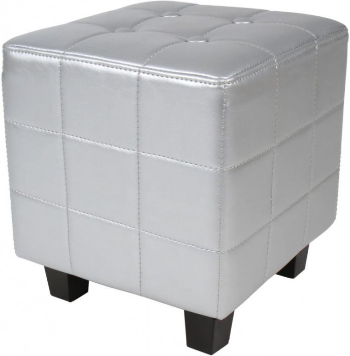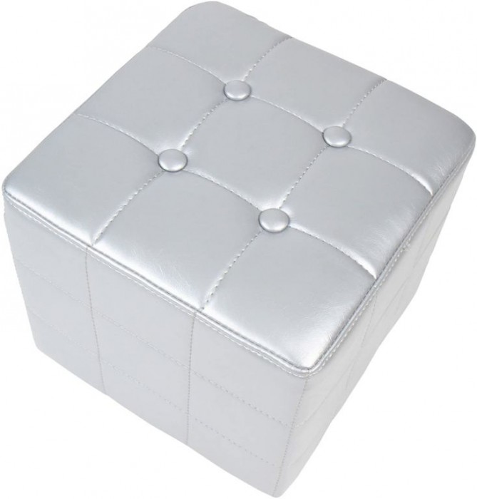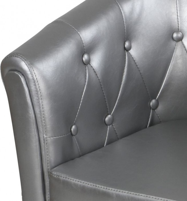 Popis: Klubové křeslo s taburetem Chesterfield, stříbrné