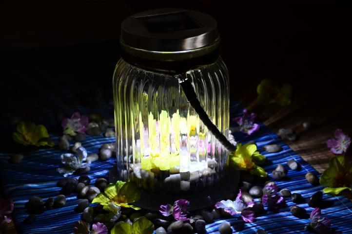 - 3 sklenice s konopným lanem a integrovaným solárním panelem