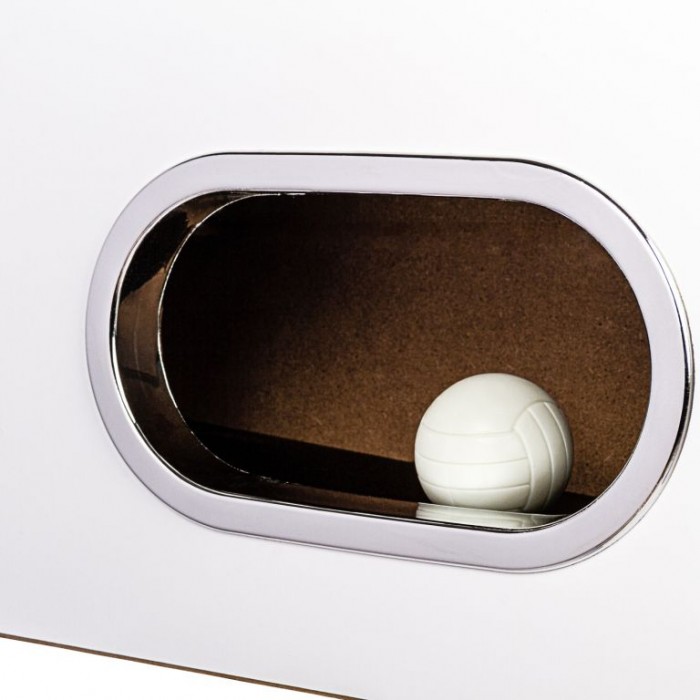 Hlavním rysem stolního fotbálku je skládací mechanismus, pomocí kterého lze stolní fotbal prakticky všude úsporně uložit. Speciální stabilitu zajišťují stabilizační tyče pod hracím polem a křížové výztuhy na nohou. Díky kvalitním protiskluzovým a ergonomicky tvarovanými držadly je ovládání míče hračka. Hladce zvednuté rohy zajistí hladký průběh míče, který Vám nikdy nezůstane v rozích. Figurky jsou šroubované a malované v barvách modrá / bílá a černá / bílá. Pomocí montážních pokynů je fotbalový stůl snadno a rychle postaven a připraven ke hře. Uložení tyčí je skrze chromovaná kluzná ložiska, která jsou robustnější a odolnější vůči opotřebí.