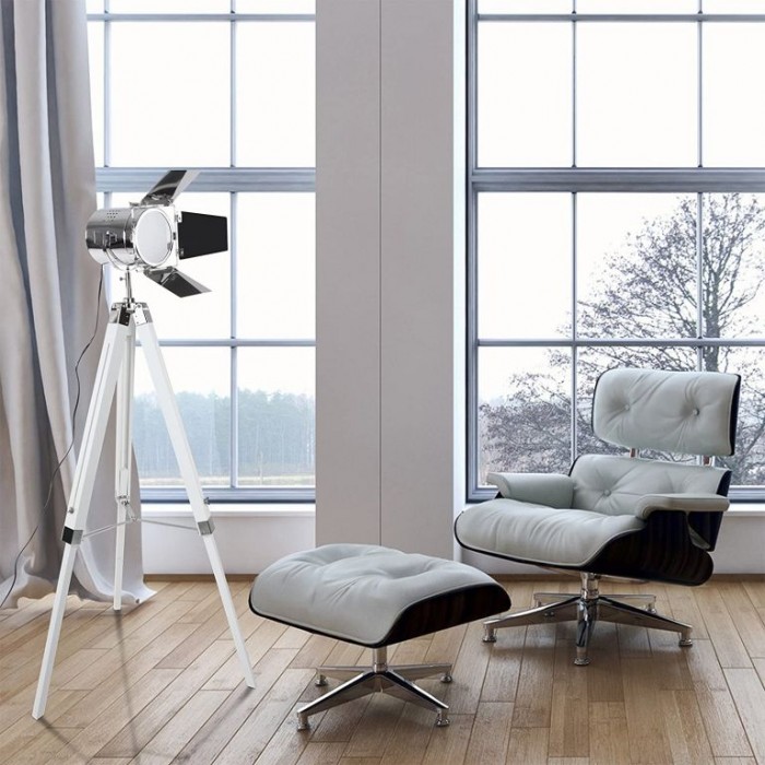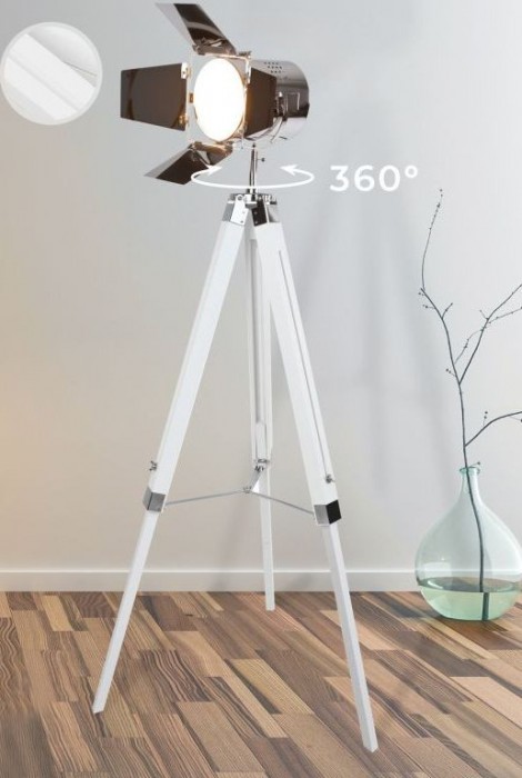 Praktická dřevěná trojnožka je výškově nastavitelná. Kulatý bod z pochromovaného kovu je vybaven čtyřmi rámečky. To na jedné straně podporuje typický vzhled profesionálního vybavení a na druhé straně umožňuje individuální nastavení světla. Bod lze otáčet o 360 stupňů. Teplo dřeva a chladná elegance kovu vytvářejí dekorativní kombinaci pro vybranou místnost.