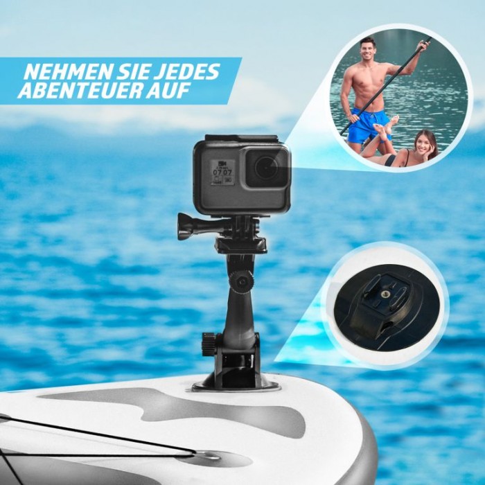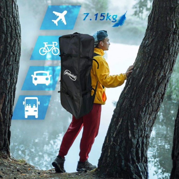 Paddleboard je vyroben z materiálu PVC. Jeho hlavní deska je zesílena technologií Drop-Stitch. Drop-stitch je spojení dvou vrstev tkaniny (PVC, Nitrilon) tisíci a tisíci vláken z nylonu. Díky tomu nahusto umístěná vlákna zaručují, že materiál se po nafouknutí nevyboulí, ale drží tvar. Díky průhlednému oknu můžete sledovat krásu podvodního světa. Na desce také naleznete sedadlo, tři ploutve, praktickou rukojeť, protiskluzovou a měkkou EVA pěnu. Pro snadné přemisťování máte k paddleboardu praktický batoh. Narozdíl od mnoha jiných modelů je také opatřen držákem kamery na horní straně desky pro všechny, kteří chtějí natáčet svá dobrodružství. Dodává se s výsuvným dvojitým pádlem, bezpečnostním lanem na kotník, ruční pumpičkou, batohem, voděodolnou taškou a sadou na opravu.