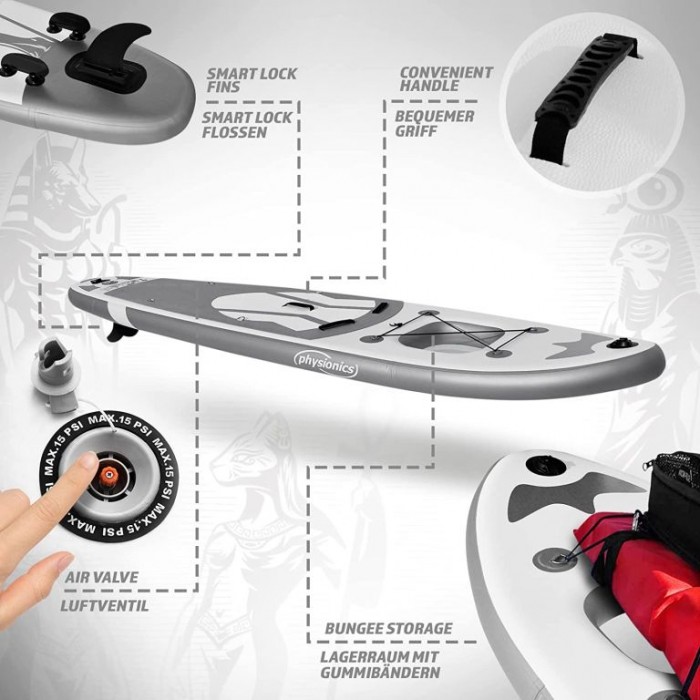 Popis: PHYSIONICS Nafukovací paddleboard, bůh Anubis, 305 cm