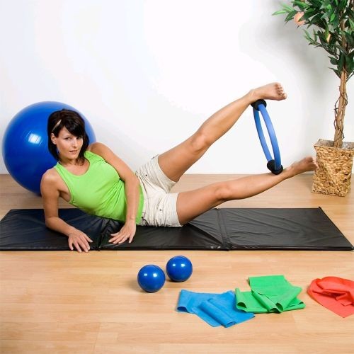 Vytvořte si vlastní program cvičení, do kterého můžete zahrnout oblíbenou jógu i pilates. Jóga sada obsahuje 1 modrý gymnastický míč s maximálním zatížením 300 kg, 1 pilates kroužek, dva míčky v modré barvě (1 kg) a 3 různě silné gymnastické stuhy v barvách - červená, zelená a modrá. Tato sada je vhodná zejména ke stabilizaci páteře, ale procvičíte s ní důkladně také svaly na pažích, nohách a břichu. Zpevněte si svaly, ulevte kloubům i páteři, zharmonizujte svou psychiku.