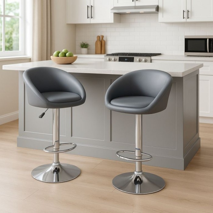 Elegantní a moderní barová židle s pohodlným sedákem z PU materiálu. Židle je vybavena nastavitelnou výškou díky plynovému pístu, což zajišťuje pohodlí pro každého uživatele. Stabilní základna z pochromované oceli dodává židli moderní vzhled a maximální stabilitu. Díky univerzálnímu antracitovému odstínu je tato židle ideálním doplňkem do kuchyně, baru nebo jídelny.