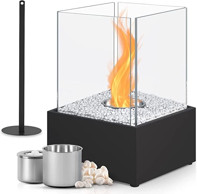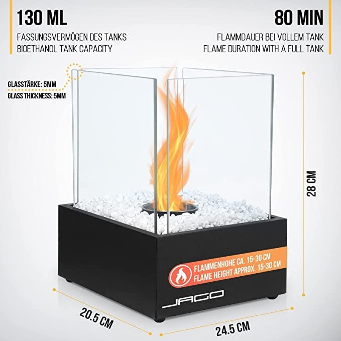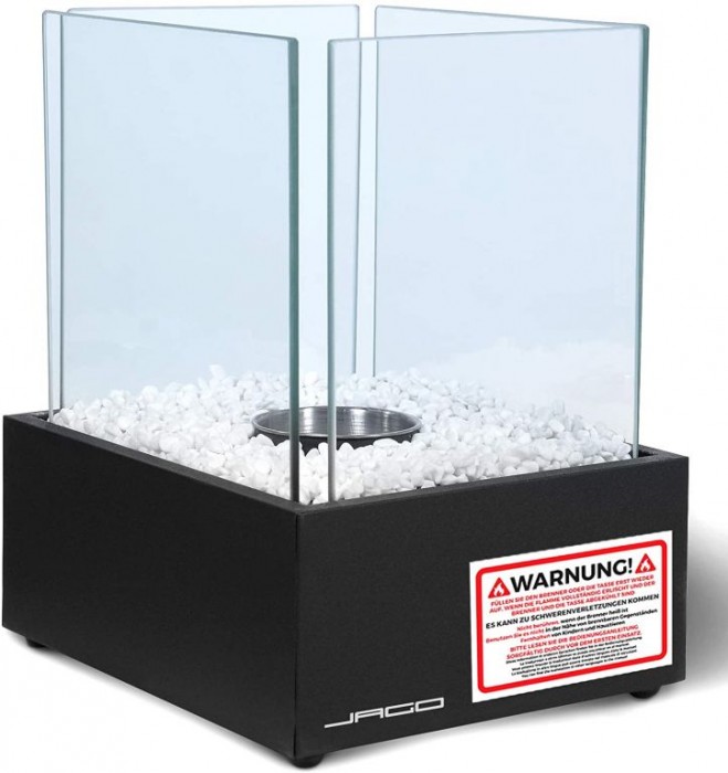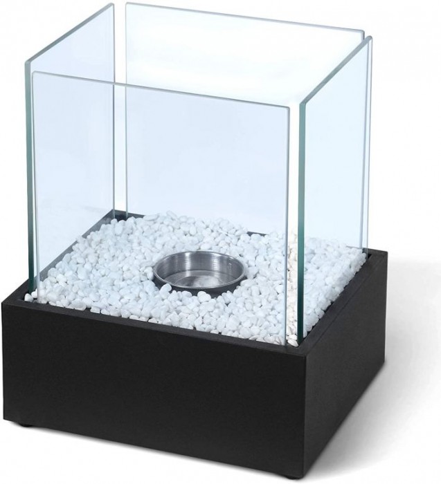 Dotaz k produktu Stolní bio krb s bílými kameny, černý, žáruvzdorné sklo, 24,