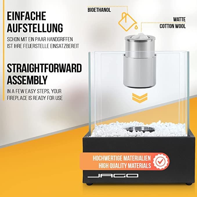 Přílohy pro: Stolní bio krb s bílými kameny, černý, žáruvzdorné sklo, 24,