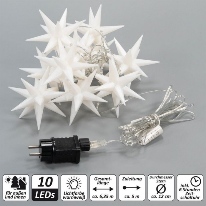 Popis: Vánoční LED hvězdy, teple bílé, 10 LED, průhledný kabel