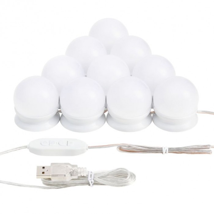Dekorativní LED osvětlení na zrcadlo, 10 lamp, USB napájení