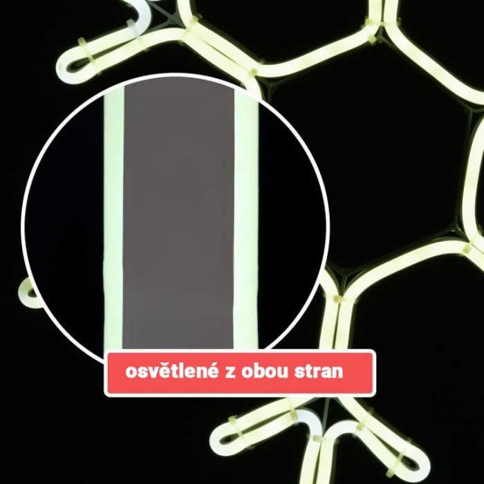 Velká sněhová vločka je ideální jako dekorace do oken, ale lze ji použít i na dveře a stěny. Můžete ji použít v interiéru i v exteriéru. Osvětlení v neonovém designu. Testovaná třída krytí IP44 zajišťuje bezpečnost i pro venkovní použití.
