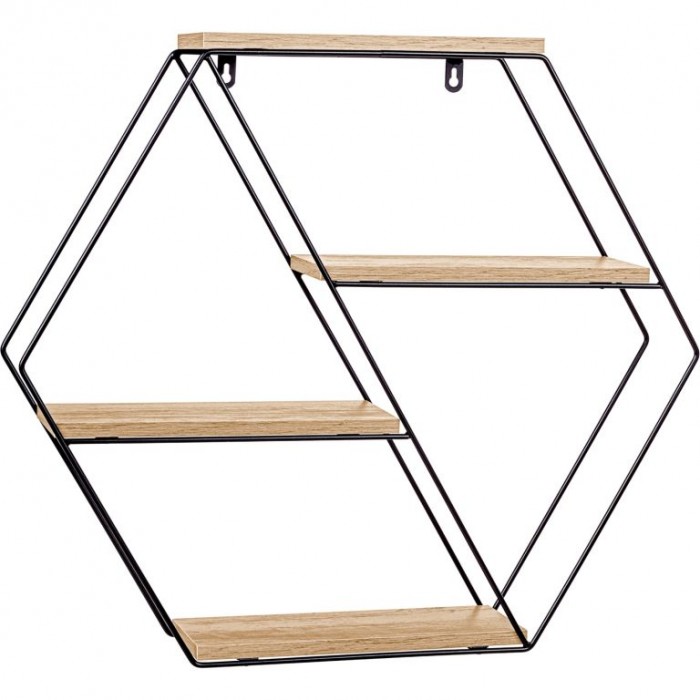 Popis: STILISTA Nástěnná šestihranná police, světlé dřevo, 51x58 cm