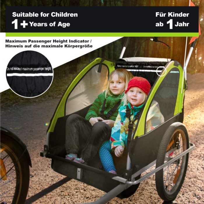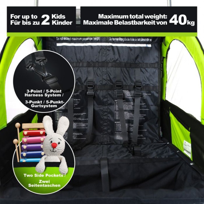 Popis: Jago Přívěs za kolo pro 2 děti, zelená