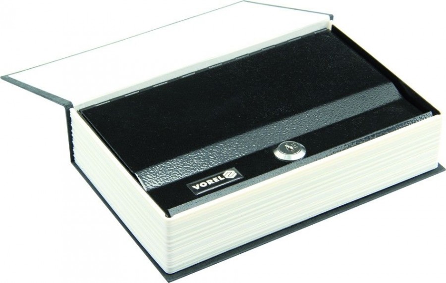 Přenosná peněžní kazeta ve tvaru knihy, rozměry 240 x 155 x 55 mm. Kryt je vyroben z lepenky a vnitřní kazeta je vyrobena z ocelového plechu o tloušťce 0,7 mm, natřena černě. Uzamykatelná kazeta. Sada obsahuje 2 klíče.